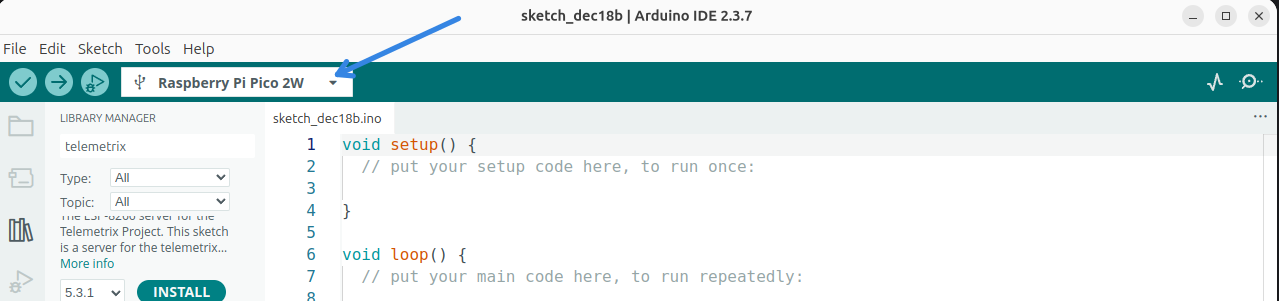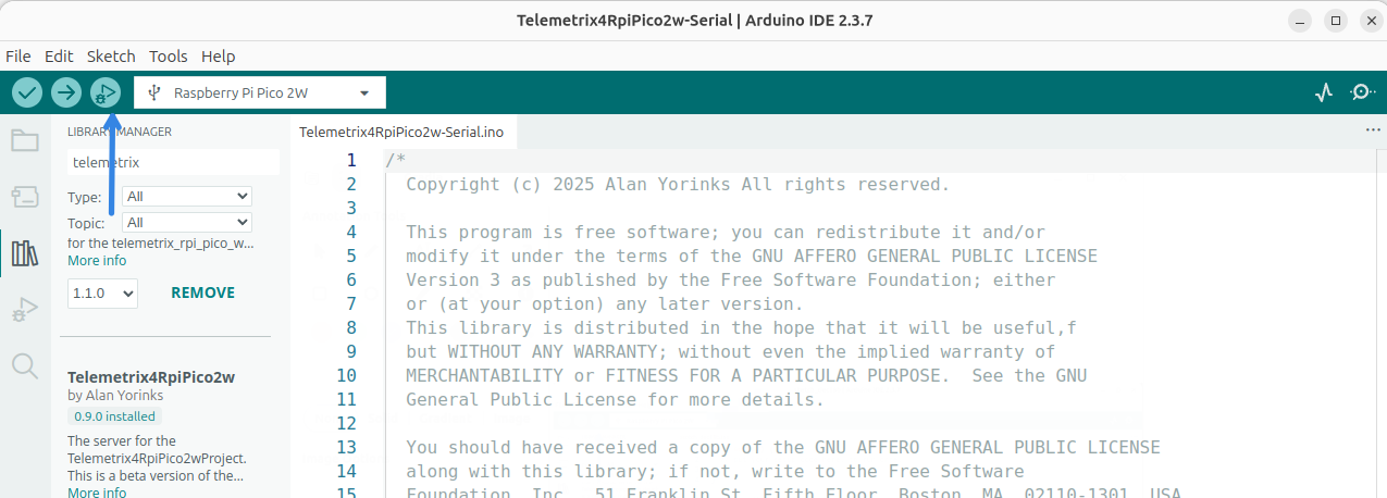 Next, plug your Pico into a USB port and upload the server by pressing the upload button on the Arduino IDE.